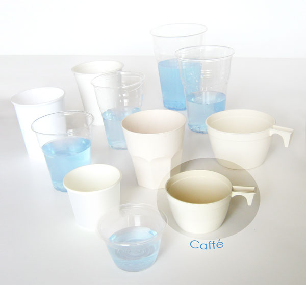 Tazzina da caffè in Mater-Bi ©: plastica biodegradabile e compostabile derivata dal mais.