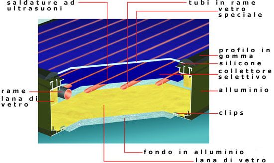 L'assorbitore è rivestito in Tinox, materiale che permette al pannello solare di lavorare bene anche durante le stagioni fredde o nelle Regioni meno soleggiate.
